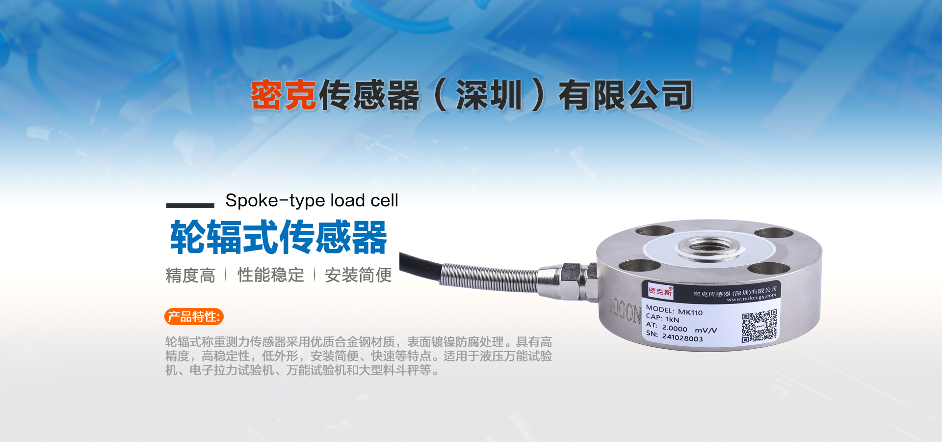 密克傳感器(深圳)有限公司主要生產(chǎn)的產(chǎn)品有測力傳感器、稱重傳感器、拉力傳感器、壓力傳感器、扭矩傳感器,多維力傳感器,電子引伸計(jì)等各類力學(xué)和稱重傳感器、及其配套儀器儀表和模塊附件的工廠。